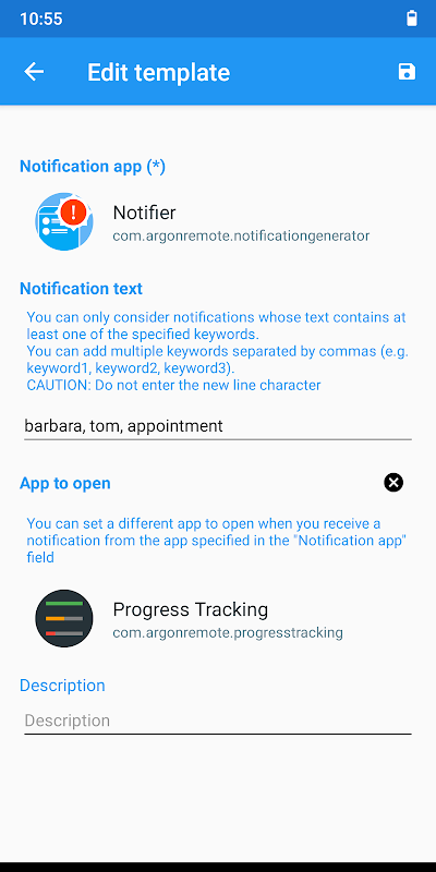 همچنین میتوانید کلیدواژهها را طوری تنظیم کنید که برنامه را تنها در صورتی باز کنند که اعلان حاوی آنها باشد.