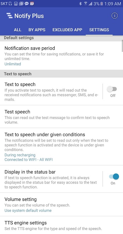 * If you wish to save and manage your notification history through 'Notify plus' which is registered as Notification Access Permission App, you need to designate it as [Notification Access Permission] App.