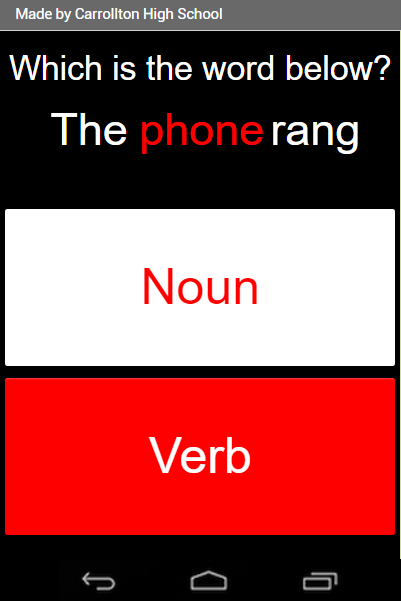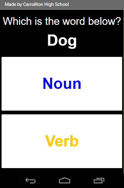 در این بازی شما می توانید بین سطوح مختلفی از دشواری های مختلف را انتخاب کنید تا به شما در یادگیری بخشی از گفتار و لذت بردن از آن عمل کنید! یک کلمه در بالای صفحه ظاهر می شود و شما باید انتخاب کنید که آیا کلمه داده شده یک اسم یا فعل است یا بسته به کدام سطح شما یک اسم مستعار یا انقباض را انتخاب می کنید! کلمه شما به صورت تصادفی از یک لیست از بیش از 30 کلمه مختلف انتخاب شده است تا اطمینان حاصل کنید که شما می توانید واژگان خود را در حالی که سرگرم گسترش! امتیاز شما را به عنوان بسیاری از نقاط که می توانید با گرفتن سوالات درست در زمان شما! تمرین کنید تا بهترین واژگان را در کلاس خود بدست آورید!