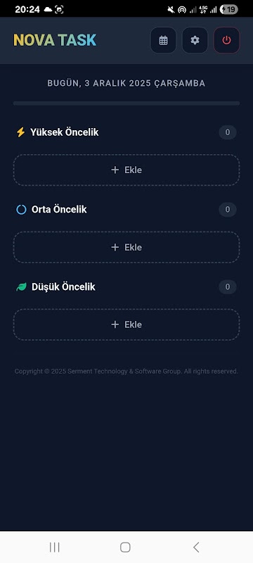 Günlük karmaşanın içinde kaybolmayın! Nova Task، Serment Technology & Software Group kalitesiyle geliştirilmiş، görevlerinizi سازماندهی etmenin en modern ve şık yoludur. İster günlük işlerinizi، ister büyük projelerinizi planlayın; Nova Task size ihtiyacınız olan odaklanmayı sağlar.