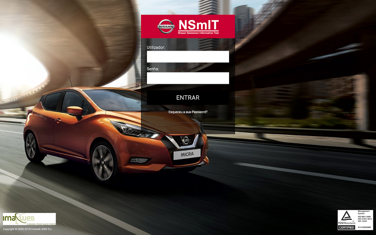 نیسان NSmIT از برنامه Imaweb یک سیستم عملیات فروش ماشین منحصر به فرد برای صنعت خودرو توسط کارشناسان در خرید و فروش ماشین های توصیه شده توسط فروشندگان، فروشندگان و تولید کنندگان مستقر در محیط وب و طراحی شده به طور خاص است. این است که توسط هزاران نفر از فروش حرفه ای که به طور قابل توجهی بهبود مدیریت، سودآوری و وفاداری مشتری استفاده می شود. اجرای آن برای پوشش شبکه فروش کامل شگفت آور سریع است و می دهد تولید کنندگان بازگشت فوری در سرمایه گذاری، نه فقط به دلیل فروش بهبود یافته و تصویر خود را، و همچنین به خاطر توسعه گزارش قدرتمند تر از سیستم بازار