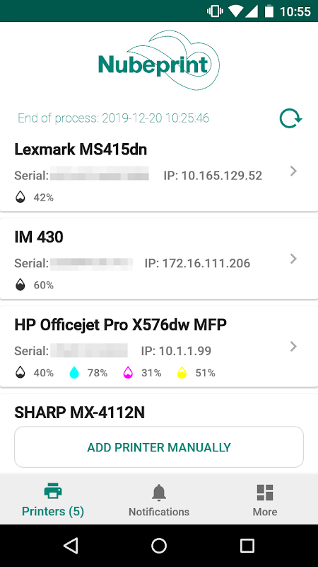 Nubeprint یک ابزار رایگان برای نظارت است که از پیشرفته ترین فناوری پویا و هوش مصنوعی (A.I.) برای نظارت بر هر چاپگری که به شبکه متصل است (LAN) ، چه از طریق کابل و چه WIFI ، استفاده می کند. این دو مزیت اصلی برای شما دارد: از یک طرف می توانید چاپگرهای خود را کنترل کنید و از هر لحظه فعلی ترین وضعیت آنها را بدانید. از طرف دیگر ، شما می توانید تأمین کننده لوازم مصرفی چاپگر کارتریج های جدید را به طور خودکار به شما یا حتی با هزینه خدمات برای هر صفحه بفرستید.