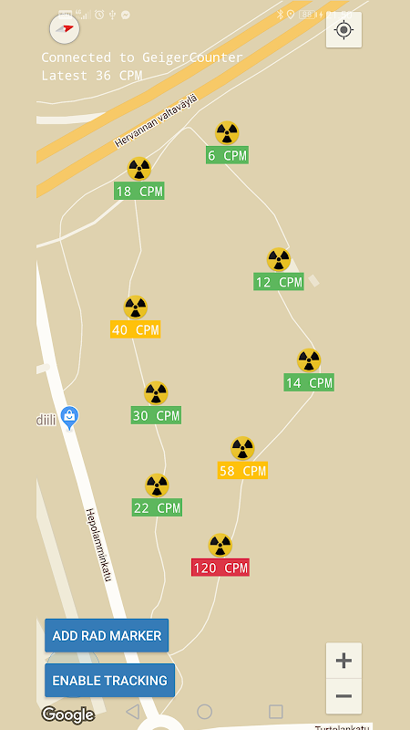 • Radiation Map که از ویژگی های نقشه برداری با استفاده از Google Maps است. اکنون می توانید نقشه برداری از سطح تابش را روی نقشه اطراف مناطق شروع کنید.