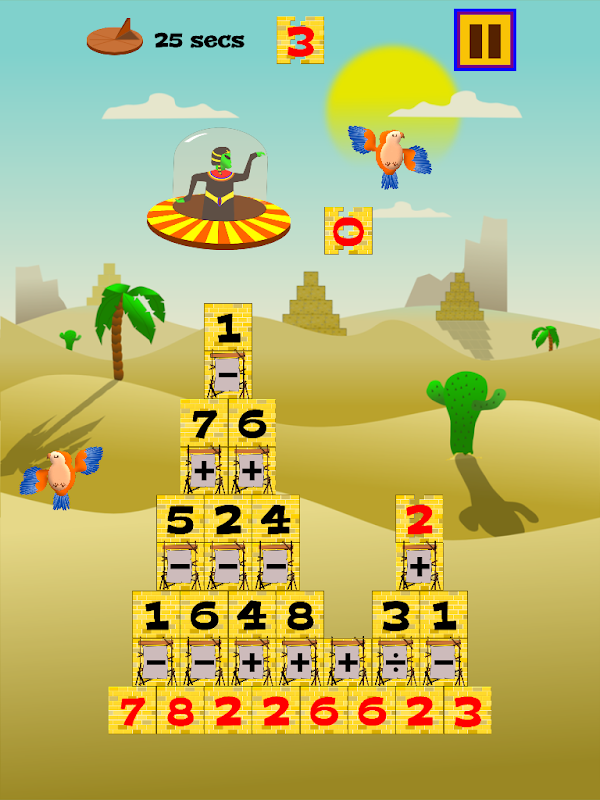Help pharaohs build pyramids using plus, minus, multiply and divide
