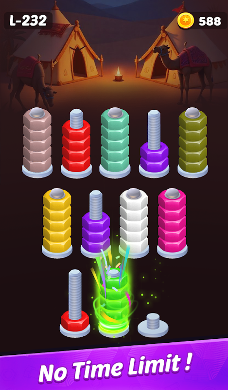 - تقویتکنندههای قدرتمند مانند Super Nut، Swap Nut و Hint تا راه شما را در سختترین معمای پیچی یا چالشهای پازل مرتبسازی پیچی راهنمایی کنید.