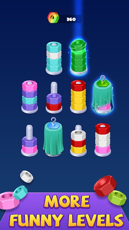 به Nut Sort - Color Sort Puzzle خوش آمدید، دنیایی که در آن هر پیچ یک بازی فکری است. ماموریت شما؟ پیچ ها را باز کنید، آنها را بر اساس رنگ مرتب کنید، و آنها را در ستون های کامل 4 تایی قرار دهید. ساده به نظر می رسد؟ دوباره فکر کن!
