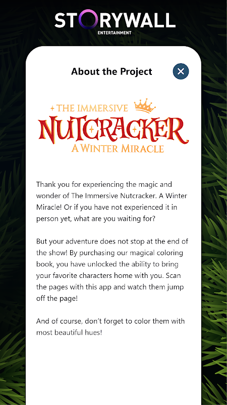 Nutcracker AR یک برنامه همراه برای کتاب رنگ آمیزی اصلی Immersive Nutcracker است. از برنامه جادویی ما برای زنده کردن شخصیت های کتاب استفاده کنید و تماشای پرش آنها از صفحه! هر شخصیت را در سه بعدی نفس گیر کاوش کنید یا حتی با آنها عکس بگیرید!