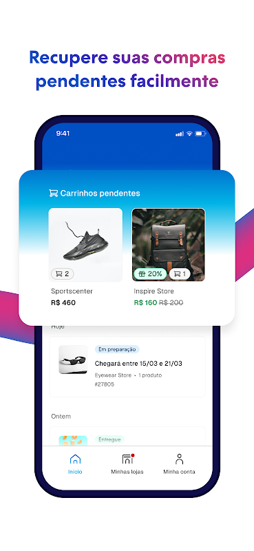 با Nuvem، میتوانید سفارشات خود را به صورت آنی پیگیری کنید، خریدهای در حال انتظار را از سر بگیرید و از فروشگاههای شبکه Nuvemshop خود اخبار دریافت کنید.