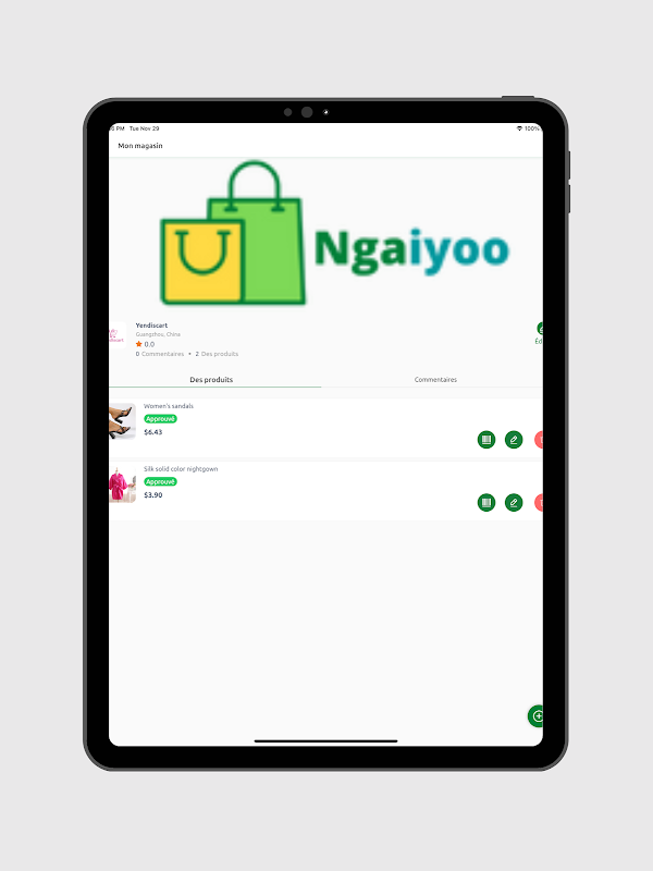 به برنامه Nyonso Manager خوش آمدید. Nyonso Manager یک برنامه برای فروشندگان در برنامه Nyonso است. این برنامه به شما امکان می دهد فروش روزانه Nyonso خود را مدیریت کنید، محصولات را پست کنید و در nyonso.com و برنامه Nyonso بفروشید. با استفاده از این اپلیکیشن می توانید سفارشات خود را دنبال کنید، وضعیت سفارشات خود را تغییر دهید، با مشتریان خود ارتباط برقرار کنید و وضعیت تحویل خود را به صورت لحظه ای به روز کنید. Nyonso Manager برای هر کسی که می خواهد در برنامه Nyonso بفروشد رایگان است. شما می توانید بخشی از سریع ترین بازار در حال رشد در کنگو و آفریقا باشید. به فروش محصولات خود در Nyonso App خوش آمدید.