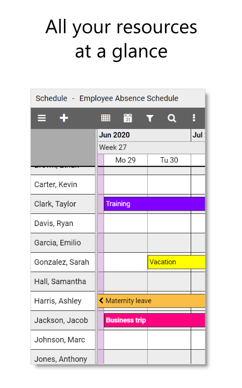 از Oberplan برای برنامه ریزی منابعی مانند کارمندان ، اتاق ها ، ماشین ها یا تجهیزات استفاده کنید.