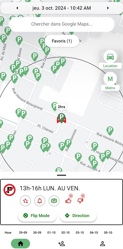 Tu peux maintenant choisir un jour de la semaine et les heures exactes auxquelles tu souhaites savoir quand une section ne sera plus interdite. Tu seras en mesure de toujours trouver du stationnement si tu viens 10 minutes à l'avance !