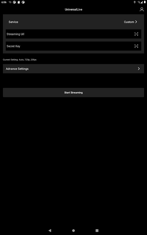 You can directly select the service provider and server node, fill in your secret key, and then live broadcast.
