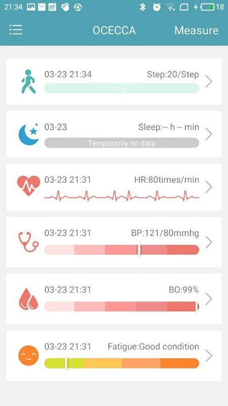 Testing heart rate, blood oxygen, blood pressure and fatigue measurement.