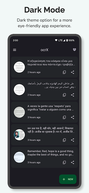 ocrX که قبلاً به عنوان Smart Text Recognizer شناخته میشد، به یک برنامه قدرتمندتر و کاربرپسند تبدیل شده است که متن را در چند ثانیه از تصاویر میگیرد. با به روز رسانی قوی جدید، اکنون می توانید متن اسکن شده خود را به صورت PDF یا TXT صادر کنید - سازماندهی، اشتراک گذاری و ذخیره اطلاعات مهم را از همیشه آسان تر می کند.