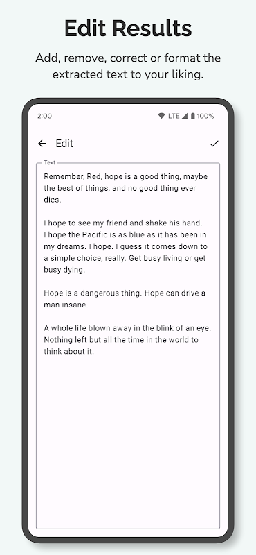 • متن استخراج شده را مستقیماً در برنامه ویرایش کنید - برای بازبینی سریع یا تغییرات لحظه آخری عالی است.