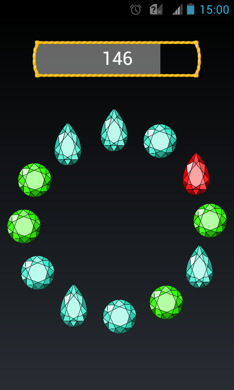 Crystals of different colors and shapes are placed circumferentially. There are several crystals of each type, and only one has no counterpart. Your goal is to find and tap it.