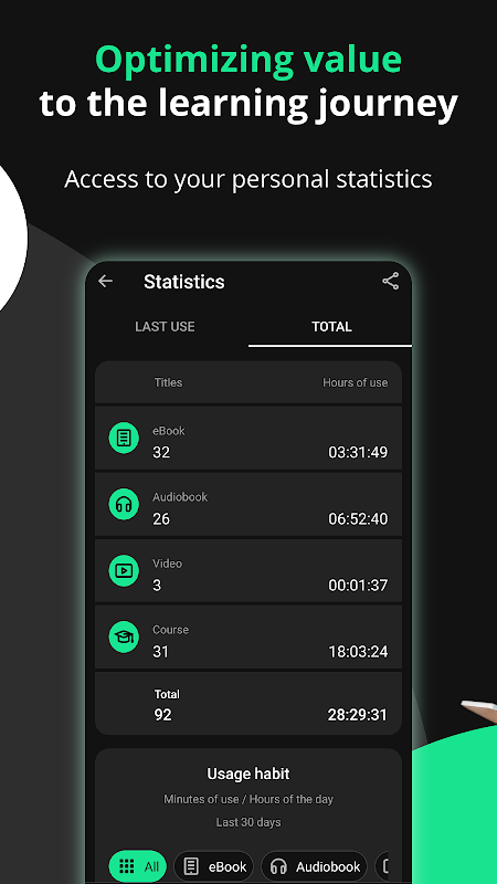 - دسترسی با یک کلیک به محتوای انتخاب شده از بزرگترین کاتالوگ آموزشی در جهان: حداکثر 4 میلیون منبع در دسترس از +6300 ارائه دهنده به 43 زبان. اتصال نامحدود، چه آنلاین و چه آفلاین، در تمام فرمت های دیجیتال (کتاب های الکترونیکی، دوره ها، پادکست ها، ویدئوها، مجلات، مطبوعات، منابع آموزشی، خلاصه ها، فیلم ها یا برنامه های آموزشی).