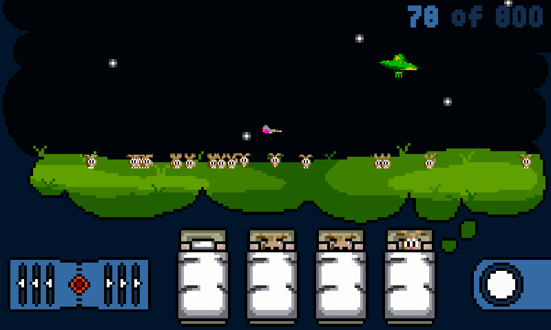 Abduct as many "lagomorphic humanoids" as possible, whilst dodging enemy ships.