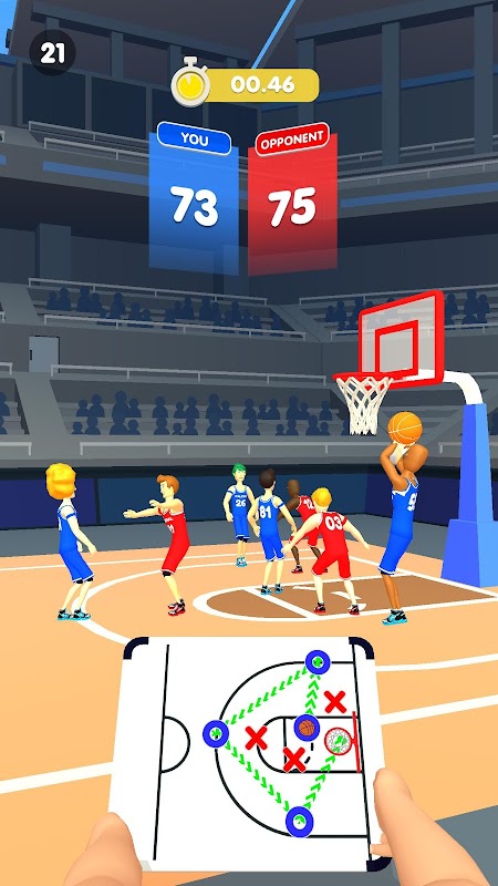 استراتژی خود را ایجاد کنید، تاکتیک خود را ترسیم کنید و در مسابقه پیروز شوید. یک بازیکن در دسترس پیدا کنید، به سمت آن بازیکن بکشید. با کشیدن توپ به سمت حلقه شوت خود را بگیرید.