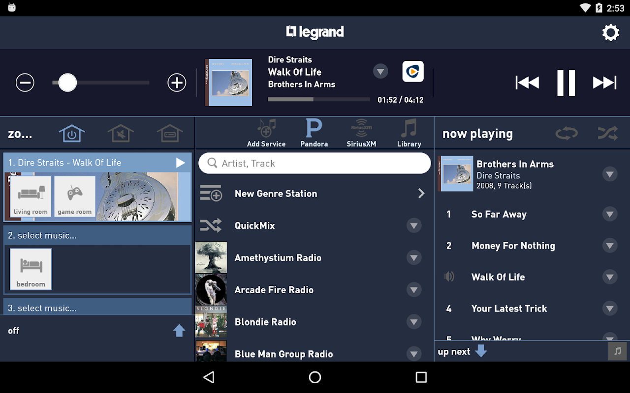 برنامه در Q صوتی دیجیتال را آسان می کند به کنترل موسیقی در تمام طول خانه شما را دوست دارم. طراحی شده برای کنترل بی سیم بصری و زیبایی شناختی از کل خود را در Q سیستم صوتی دیجیتال (فروش جداگانه)، نرم افزار قرار می دهد انواع گسترده ای از رادیو اینترنتی، به علاوه کتابخانه موسیقی شخصی خود را، درست در کف دست خود را. پخش هر انتخاب موسیقی از iTunes خود و یا کتابخانه های ویندوز، و یا حتی دسترسی صوتی از خدمات جریان های مورد علاقه. لذت بردن از آزادی گوش دادن.