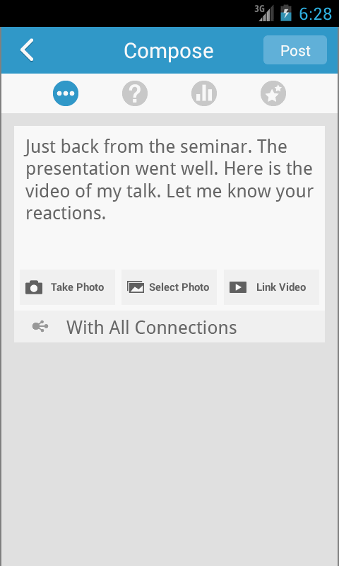 • Share your thoughts and ideas in an instant and not at the next town-hall meeting, or an off-site.