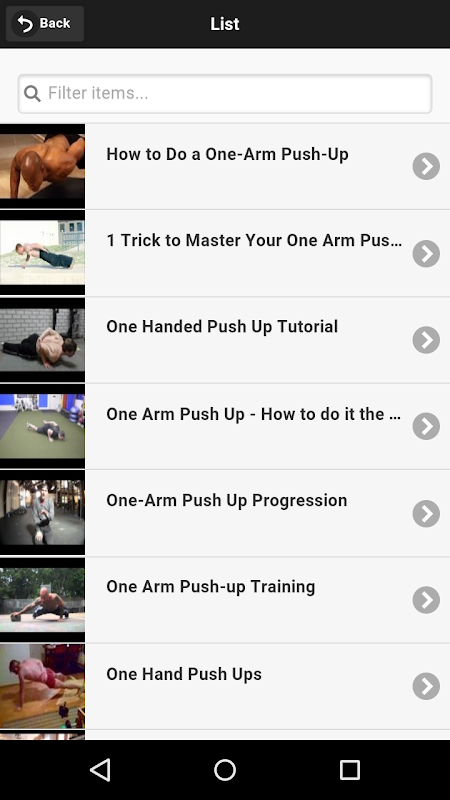 This app will give you a breakdown for each week of the month to acheive your goal of doing one arm pushups and getting a perfect body.