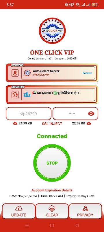 اتصال: برای ایجاد یک اتصال VPN ایمن، روی دکمه اتصال ضربه بزنید.