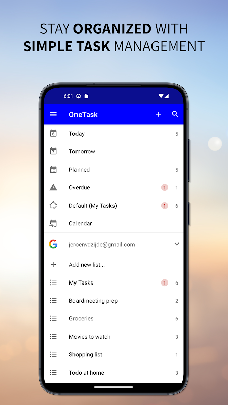 در بالای هر کار، در هر مکان باقی بمانید. لیست کارهای خود را با برنامه مورد اعتماد میلیون ها نفر به صورت یکپارچه مدیریت کنید - با وظایف فرعی، موعد مقرر، یادآوری ها و ابزارک های مفید.
