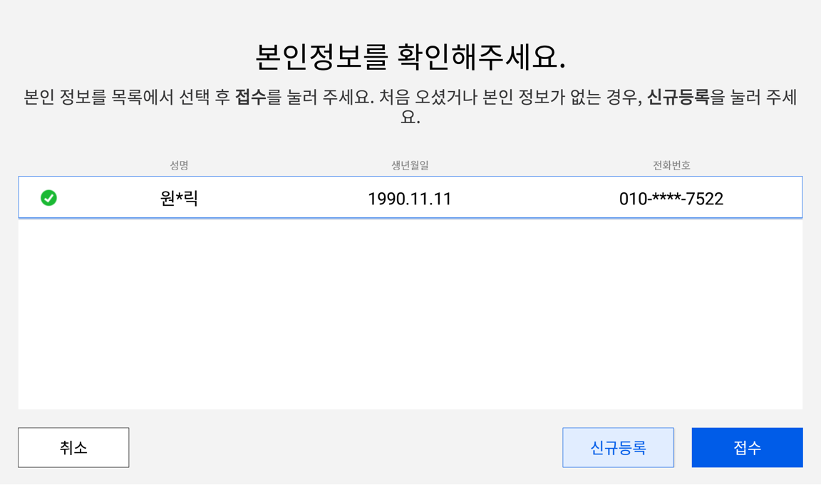 - 환자 이름을 검색한 후، 진료 접수를 진행할 수 있습니다.