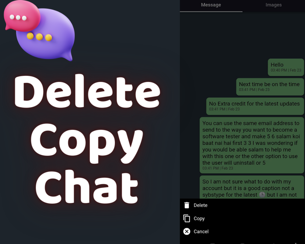 با "فقط من" می توانید به راحتی پیام ها و تصاویر خود را ذخیره و حذف کنید و حتی آنها را با دوستان و عزیزان خود به اشتراک بگذارید. طراحی بصری این برنامه، پیمایش را آسان می کند، و ویژگی حفاظت از رمز عبور تضمین می کند که داده های شخصی شما همیشه امن هستند.
