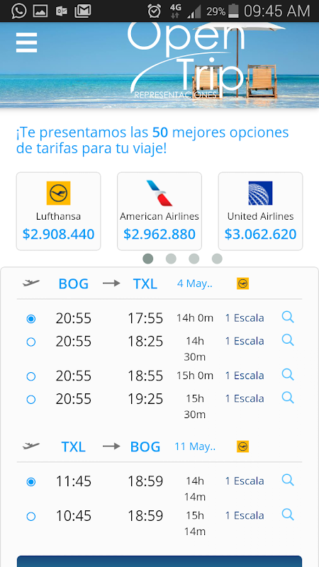 Mediante esta aplicación podrás consultar disponibilidades de hoteles, autos y vuelos en las aerolíneas más reconocidas a nivel mundial y lo más importante, podrás realizar la compra en línea de tiquetes aéreos que tengan paradas en Colombia.