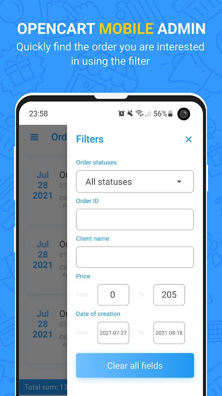با استفاده از برنامه موبایل، Mobile Admin PRO برای افزونه OpenCart به شما این امکان را می دهد که به سرعت و به راحتی اطلاعات اولیه محصولات را مشاهده کنید، وضعیت سفارشات و اطلاعات مشتری را تغییر دهید.