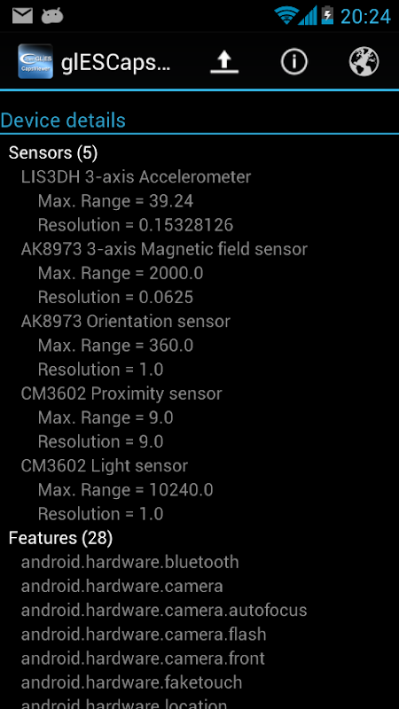 اطلاعات OpenGL ES CapsViewer APK