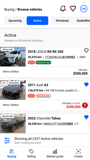 اکنون با استفاده از همان قالبهای حراجی که قبلاً به آن عادت کردهاید، تهیه و خرید وسیله نقلیه بعدیتان آسانتر از همیشه است. هر زمان که می خواهید، پیشنهاد دهید و به روشی که می خواهید بخرید.