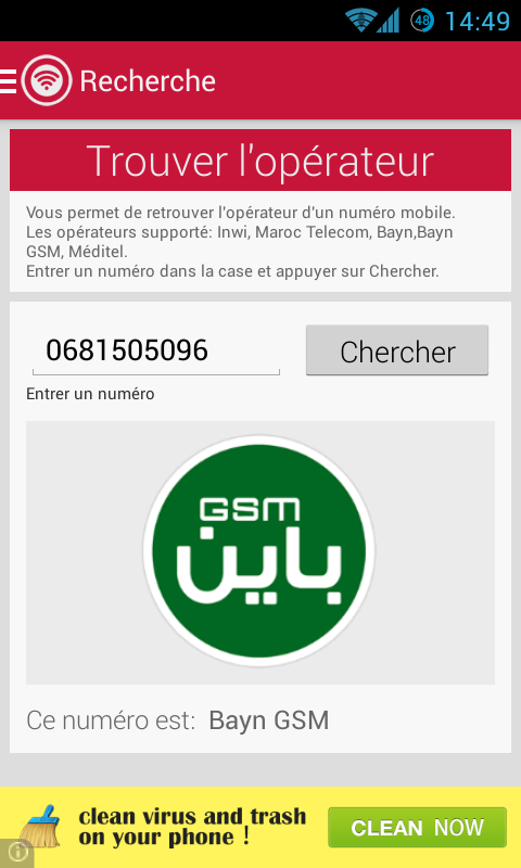 Operator Finder Morocco is an android application which allows you to view all Moroccan mobile operators of your contacts.