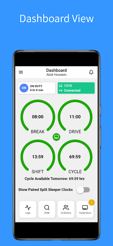 Our app is designed with drivers in mind, prioritizing their needs by creating the app with alerts, easy-to-use interface and large icons. Most functions can be accessed with just a few taps, ensuring simplicity and convenience. We understand that the ELD mandate can be complex, but we continuously strive to simplify FMCSA compliance for drivers.