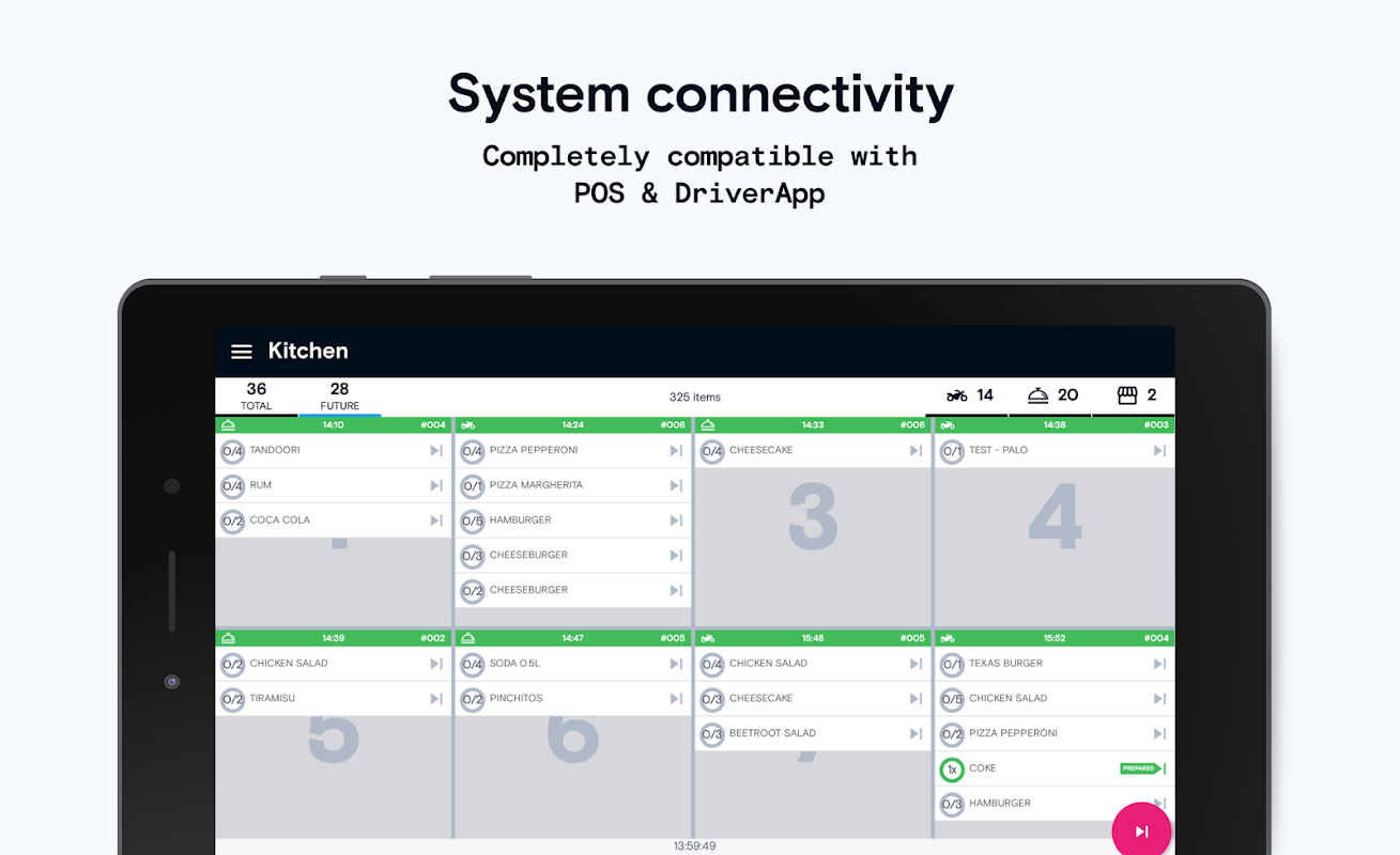 • به صورت خودکار به KDS سفارش می یابد