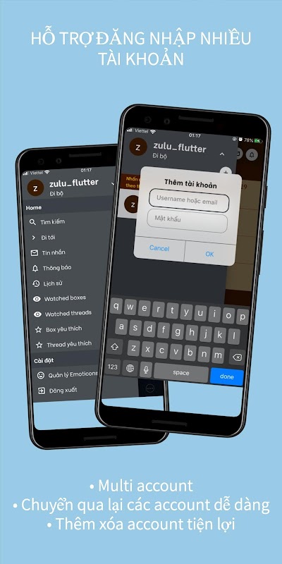 - پشتیبانی از چندین حساب (چند حساب) برای کمک به انتقال آسان و جلو به عقب
