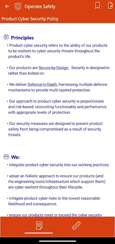این برنامه برای کارمندان شرکت رولز رویس و همچنین مشتریان، تامین کنندگان، سهامداران و سرمایه گذاران ما است. این نسخه دیجیتالی کد ما است که اصول را مطابق با ارزشهای اصلی ما یعنی عملکرد ایمن، عمل با صداقت و اعتماد برای ارائه برتری جزئیات میدهد.