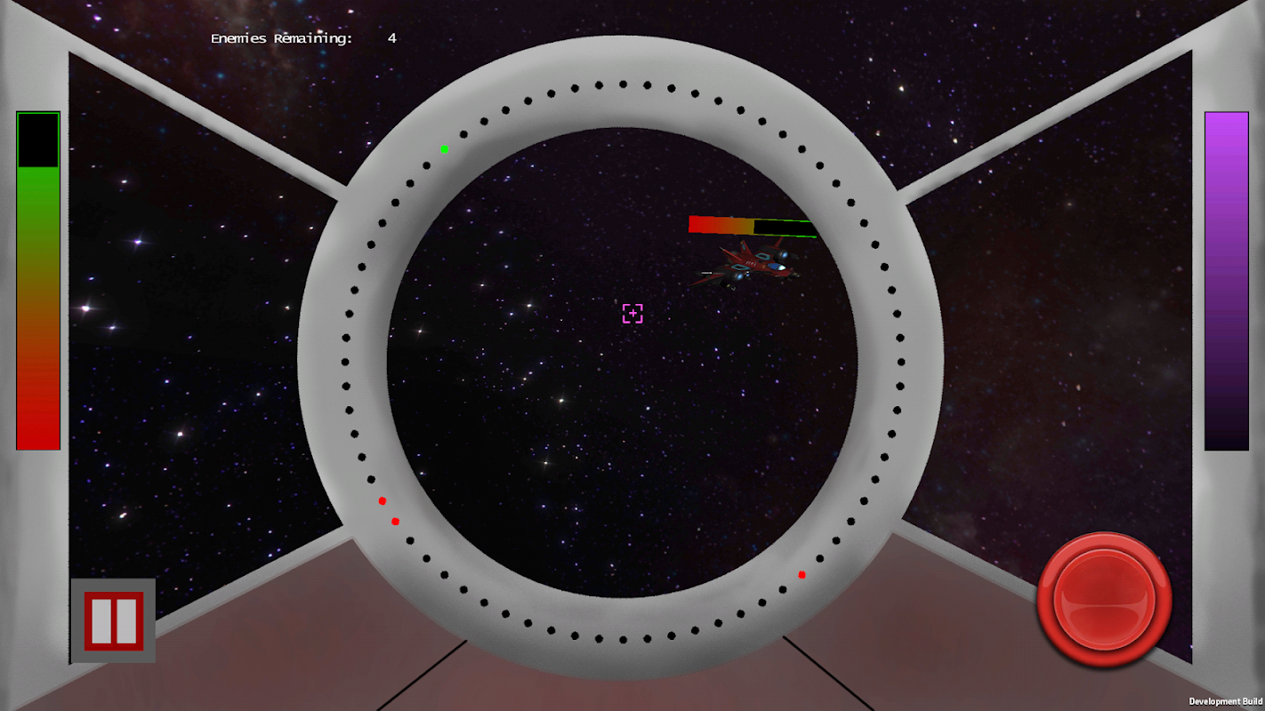 Waves of enemy fighters, bombers, and Spacecraft carriers provide challenge and depth, while asteroid fields create a scenic, destructible nuisance, for both player and enemy alike. A built in radar system tells the player which direction to face in order to search out enemy ships, and gauges show the player hull strength and fire rate.