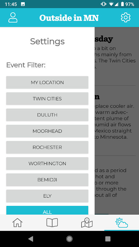 خارج از MN به روز رسانی آب و هوا به موقع، حوادث و نحوه هدایت برای شما آماده برای ماجراجویی در فضای باز بعدی خود را فراهم می کند.