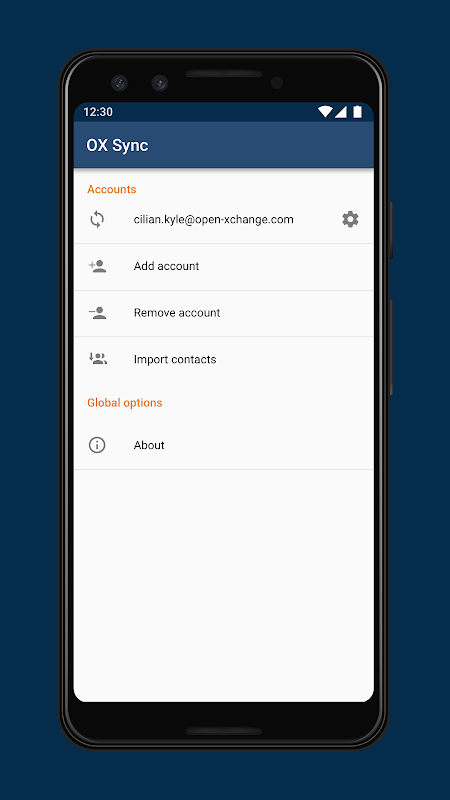 لطفاً توجه داشته باشید: برنامه OX Sync برای Android از 31 دسامبر 2025 متوقف خواهد شد. لطفاً برای گزینههای همگامسازی جایگزین از https://oxpedia.org/wiki/index.php?title=AppSuite:OX_Sync_App دیدن کنید.