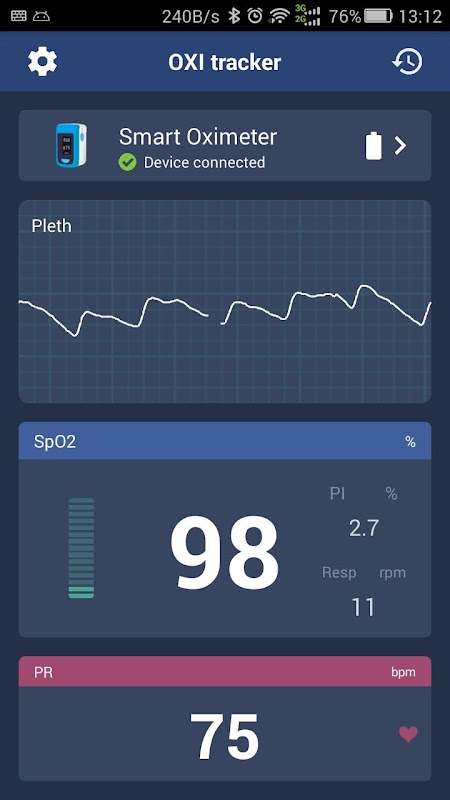 همراه با اکسی متر، این نرم افزار برای تعمیر و نگهداری روزانه از افراد مبتلا به عروق خونی dieases یا بیماری تنفسی و برای سالمندان بیش از 60، افرادی که اغلب ورزش شدید و یا worklive در محیط فاقد اکسیژن از. روند داده ها می تواند برای تجزیه و تحلیل حالت خواب استفاده می شود.