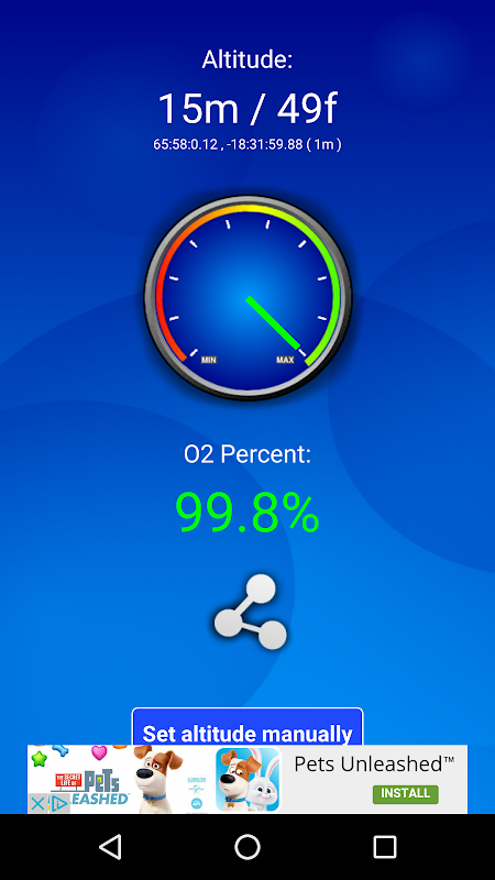 Oximeter allows you to see the percentage of breathable oxygen to your altitude.