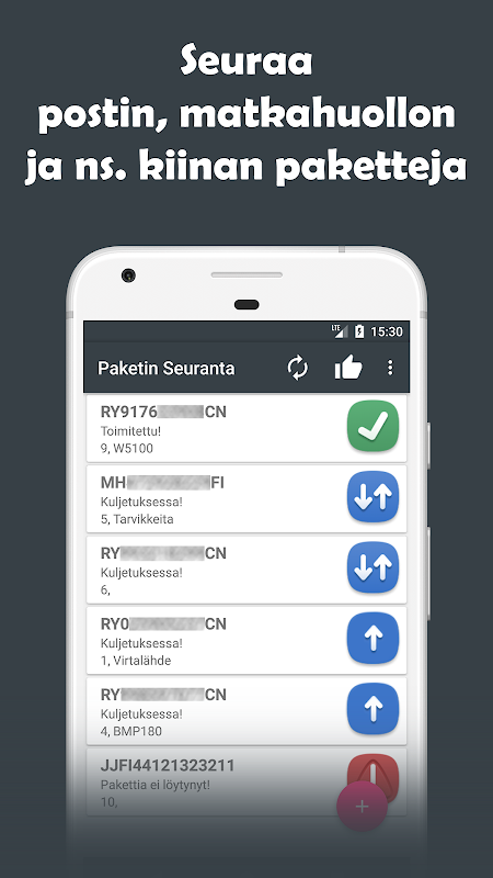 برنامه ردیابی بسته امن و رایگان با پشتیبانی از بسیاری از پیک های مختلف. ردیابی به راحتی از یک برنامه کاربردی با تمام توابع لازم از بارکد گرفته تا بایگانی. برنامه Package Tracking کاملا منطبق بر برنامه است و برنامه با سرورهای توسعه دهنده تماس نمی گیرد. تمام داده های شما در تلفن شما ذخیره می شود ، هیچ داده ای به اشتراک گذاشته نمی شود.