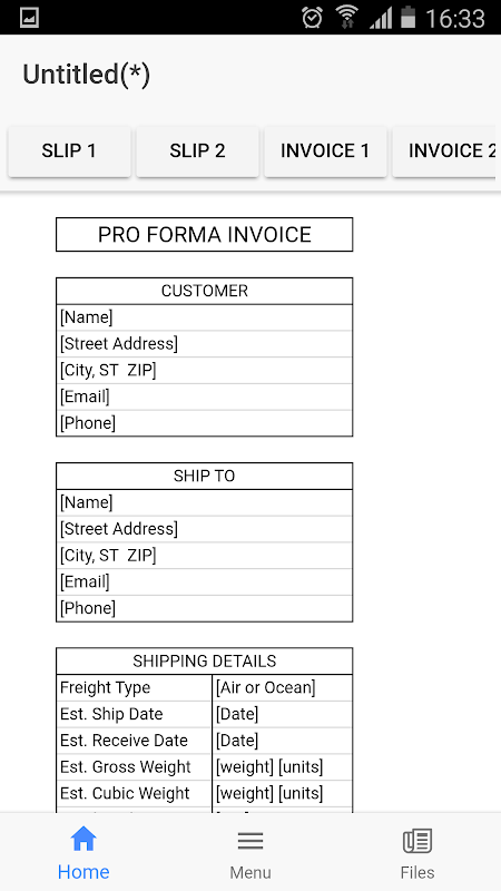 Listing the items in a shipment is an essential requisite in both domestic and international trade. Packing Slip app helps you generate, modify, organize and share your shipment details on your device. The app also includes Proforma invoice that includes additional shipping and custom details. The intuitive interface allows you to produce packing slip and invoice on your device wherever you may be.