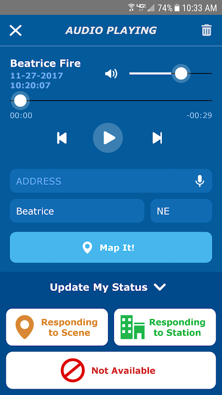 The Page My Cell app allows emergency responders to be notified of emergency dispatches on their phone through push notification. The app allows responders to update their status, showing others if they are responding or not, and see who else is responding. Page My Cell provides an easy and cost effective secondary means of notification ensuring responders are notified when they are needed. Live audio is also included for free.