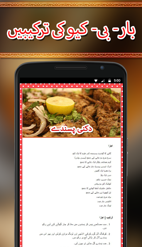 Salan or curry recipes including qorma and stew with amazing seekh curry and easy meatballs also huge variety of Barbecue including chicken tikka and malai boti with roasted ran and a lot of Pakistani recipes food. Sweets dishes including kheer and gulab jamun famous ras malai and easy cooking cakes in urdu language.