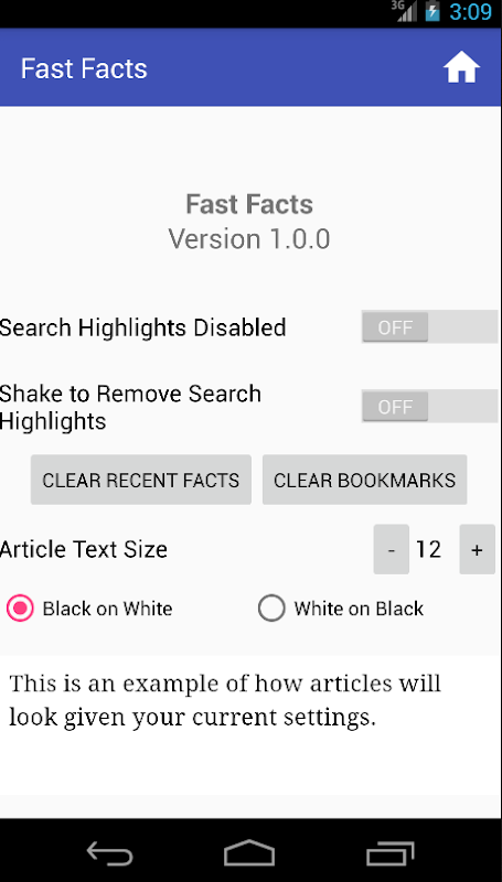حقایق سریع تسکین دهنده برای آندروید دسترسی به پایگاه داده حقایق سریع را فراهم می کند.