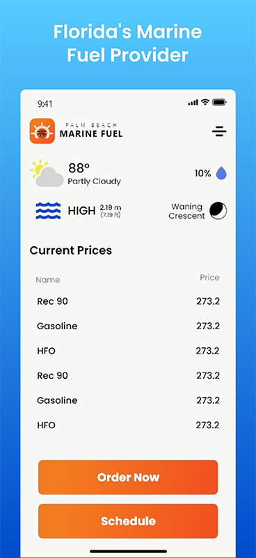 سوخت دریایی پالم بیچ: خدمات تحویل سوخت و پرداخت از طریق برنامه تلفن همراه ما.